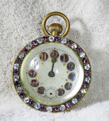 VERY FANCY JEWELED ANTIQUE PAPERWEIGHT CLOCK AS IS