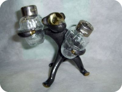 MONKEY APE Salt Pepper Shakers Art Deco Vienna Bronze 1960's