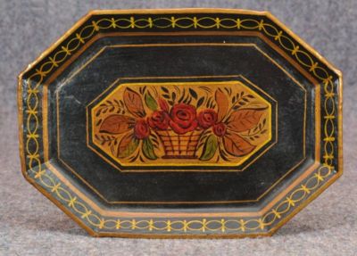 antique paint tin toleware tray 1800s small 8 in. roses