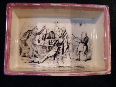 ANTIQUE SUNDERLAND PINK LUSTER BOX WITH MEN DRINKING AT TABLE