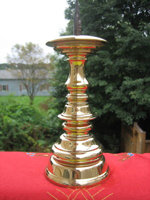 VTG Solid Brass Baldwin Spike Candle Holder, Forged in USA 10"