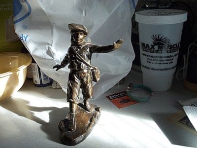 Vintage Newsboy Bronze Sculpture by Goyea Signed 7" tall
