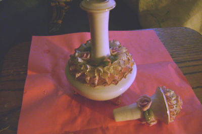 RIBBON WHITE & PINK WITH GOLD ANTIQUE PORCELAIN PERFUME BOTTLE