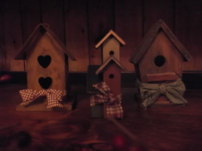 Title (ebay affiliate link): Primitive Lot of 3 Wooden Birdhouse Shelf Sitters ~Cute Items~ Gifts