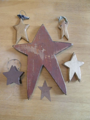 Title (ebay affiliate link): 6PC LOT OF PRIMITIVE LOOK METAL & WOOD STAR DECORATIONS
