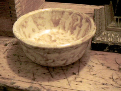 Antique Small Yellow Ware Stoneware Sponge Ware Bowl Rockingham? Bennington?