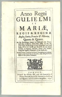 RARE English 1692 ACT OF PARLIAMENT William & Mary