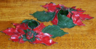 Title (ebay affiliate link): Antique Cast Iron LVL USA Christmas Poinsettia Candle Holders Circa 1922