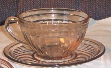 Title (ebay affiliate link): 2 Pcs Aurora Pink Cup & Saucer Depression Glass H Atlas