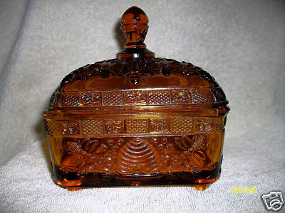 Title (ebay affiliate link): VINTAGE DEPRESSION INDIANA AMBER COVERED HONEY BOX FTD