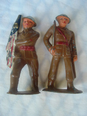 LOT OF 2 ANTIQUE VINTAGE USA LEAD METAL TOY SOLDIERS