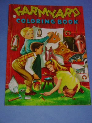 Title (ebay affiliate link): VINTAGE CHILDREN BOOK, FARMYARD COLORING BOOK, 1950, LOWE COMPANY