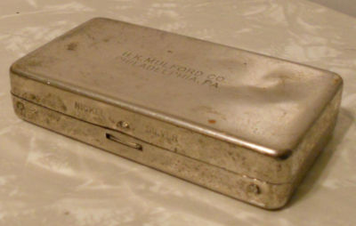 Title (ebay affiliate link): Vintage H.K. Mulford Co. Chemists Philadelphia, PA. Nickel Silver Case, Box, Tin