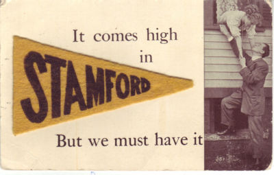 1912 Stamford NY Felt Pennant/Couples Postcard