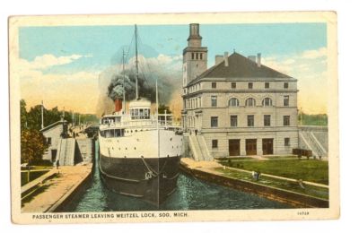 Postcard: Steamer leaving Weitzel Lock, SOO, Michigan