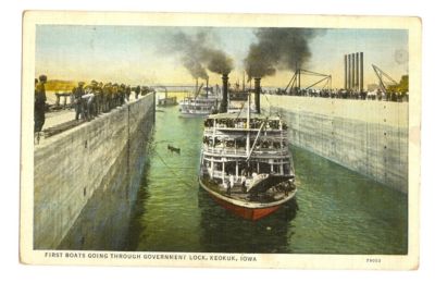 Postcard: First boats in Government Lock, Keokuk, Iowa