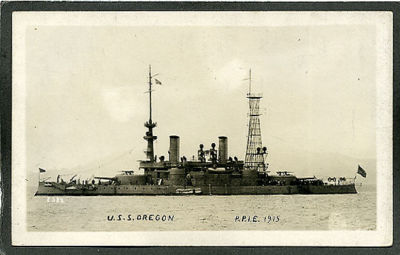 Title (ebay affiliate link): San Francisco, CA, 1915 PPIE, Navy Battleship USS Oregon In Bay, RPPC