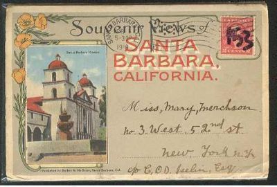 fpc153 folder postcard used. Santa Barbara California