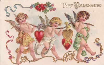 Title (ebay affiliate link): Valentines Day antique cherubs hearts 1900s German postcard