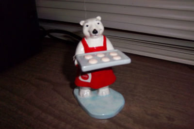 Title (ebay affiliate link): Christmas Bear Baking Cookies Polar Bear Coca Cola Figurine 1997