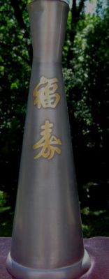 PEWTER PITCHER ASIAN WITH BRASS LETTERS NICE BY ROSSINNI