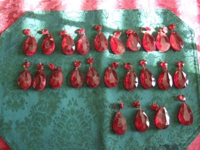 Title (ebay affiliate link): ANTIQUE SPARKLING RED CRYSTAL PRISMS SET OF 24 WITH CRYSTAL TOP AND CONNECTERS