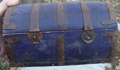 HAND MADE WOOD & METAL DK BLUE TREASURE BOX