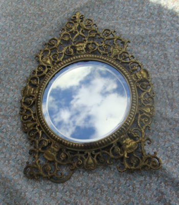 Title (ebay affiliate link): Freestanding Victorian Ornate Brass Mirror P E Guerin NY Old Man Northwind Motif