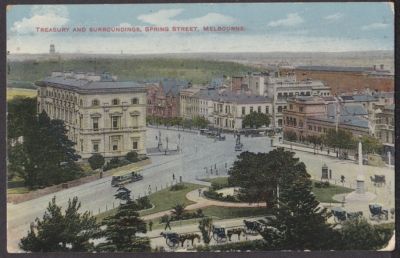 Title (ebay affiliate link): AUSTRALIA VICTORIA MELBOURNE SPRING STREET TREASURY & TRAMS PRINTED CARD