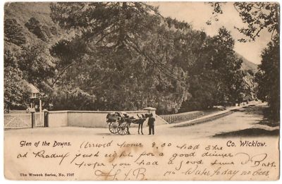Title (ebay affiliate link): Ireland Postcard - Glen of the Downs - Co. Wicklow - Donkey Cart c.1906