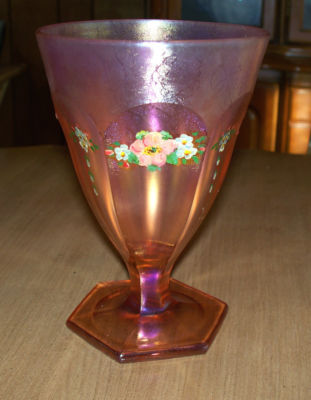 Depression Glass Goblet or Chalice - 6 inches - pink w. flowers