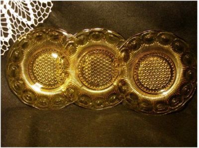 Title (ebay affiliate link): AMBER DEPRESSION GLASS Salad Plates Hobnail, Thumbprint, Holiday VINTAGE