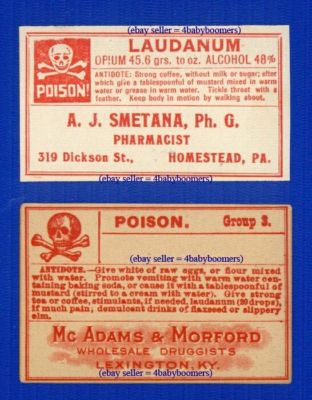 Title (ebay affiliate link): 2 Old ~ LAUDANUM POISON OPIUM ~ Antique Drugstore Narcotic Medicine Bottle Label