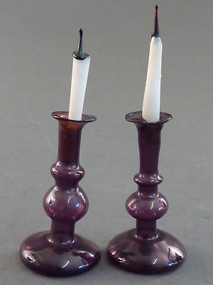 PAIR OF ANTIQUE BLOWN DOLLS' HOUSE GLASS CANDLESTICKS
