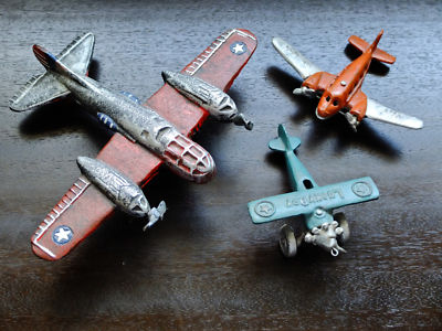 Title (ebay affiliate link): Vintage Cast Iron Airplane LOT (Lucky Boy, Bomber, Two-Prop) model toy plane