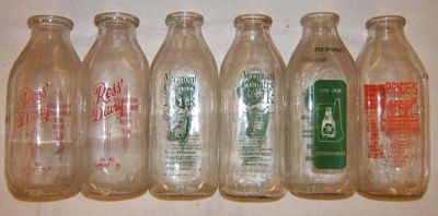 6 Old dairy milk bottle Prices Vermont Ross Hatchland qt sz NR lot