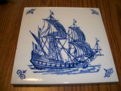 BEAUTIFUL OLD DELFT BLUE DUTCH SAILING SHIP TILE
