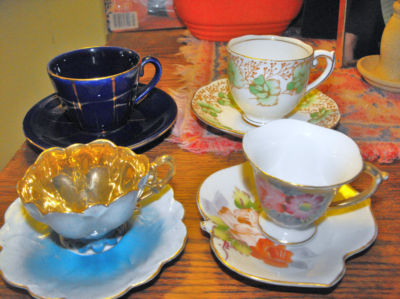 Vintage Roslyn, Royal Vienna, Aristo, Hand painted, 4 cup & saucer sets, China