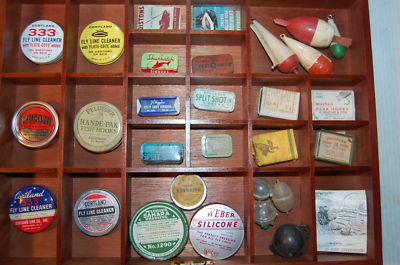 Title (ebay affiliate link): Private Collection of Split Shot Fly Line Fish Hook Tins & Collectable Wood Case