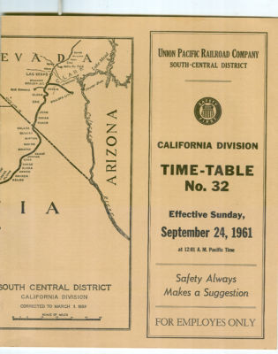 Title (ebay affiliate link): Union Pacific Railroad California Division 1961 Employee Time Table