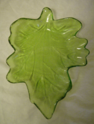 Title (ebay affiliate link): PRISTINE VINTAGE BEAUTIFUL GREEN DEPRESSION GLASS LEAF SHAPE PLATTER
