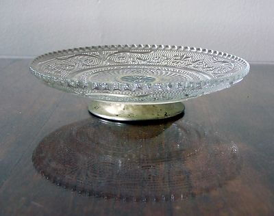 Title (ebay affiliate link): Vintage Fleur-De-Lis Clear Depression Glass Plate On Metal Platform