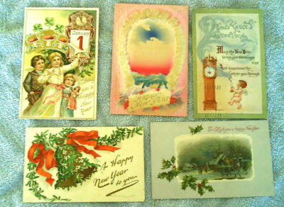 Title (ebay affiliate link): Estate Antique New Years postcard lot Grandfather clock Pink