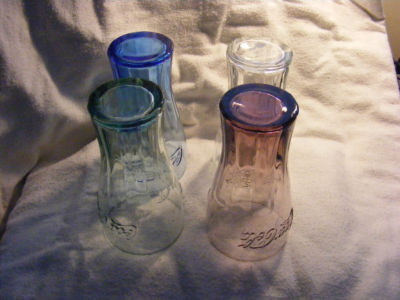 2011 mcdonalds coke glass 4 set blue,green,clear,purple,complete set