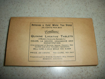 Title (ebay affiliate link): LOT OF 17 ANTIQUE Conibear's QUININE LAXATIVE TABLETS ENVELOPES MORTON, ILLINOIS