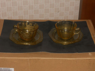 Title (ebay affiliate link): Two Vintage Federal "Madrid" Pattern Amber Depression Glass Cup & Saucer