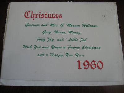 President John F. Kennedy Gov. G. Mennen Williams 1960 Christmas Card Michigan