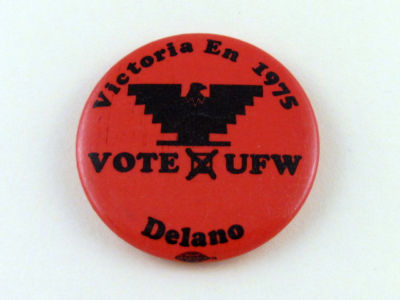 Title (ebay affiliate link): 1975 UFW UNITED FARM WORKERS UNION 1 1/2" BUTTON PINBACK VOTE UFW DELANO