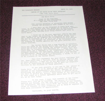 Title (ebay affiliate link): Original JFK Speech Document - Costa Rica - Rare - March 18,1963