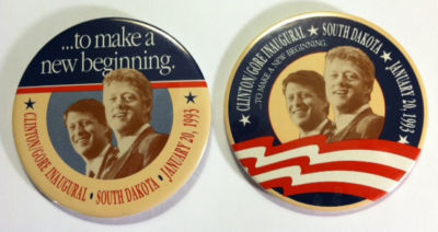 Title (ebay affiliate link): Two South Dakota Clinton/Gore Inaugural Pnbacks